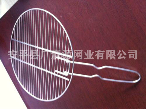 焊邊圓形帶把烤網(wǎng)一般外框絲為:3.0mm 網(wǎng)絲 0.8-1.8mm 網(wǎng)孔 1.0-1.5mm